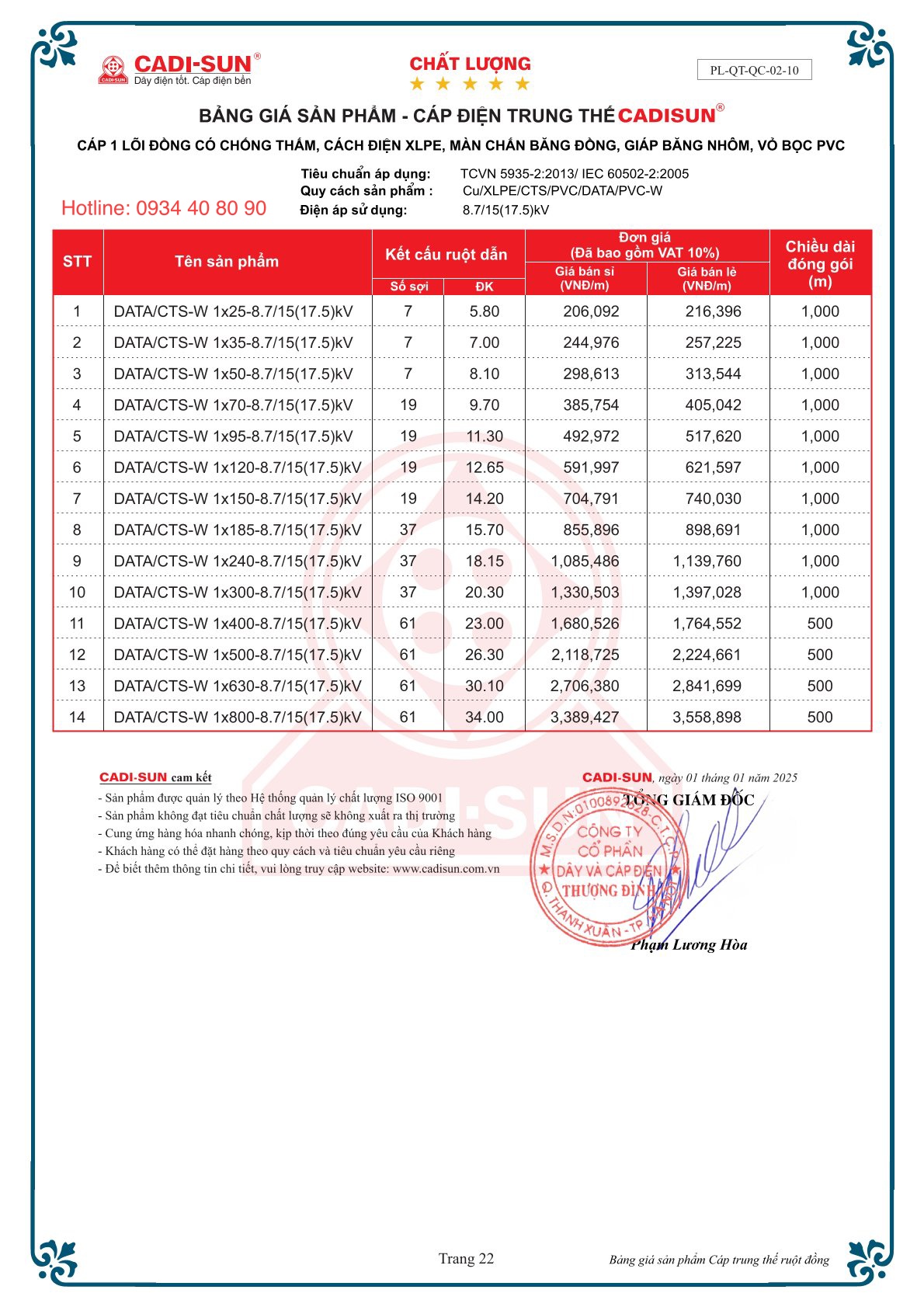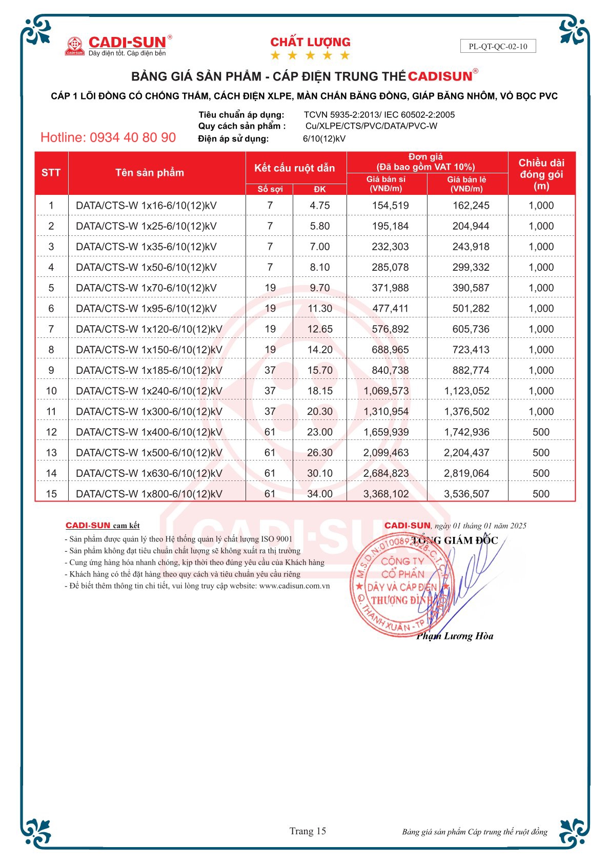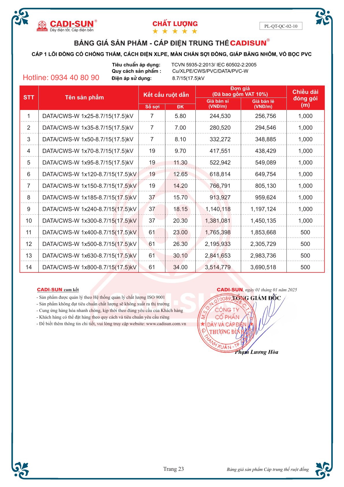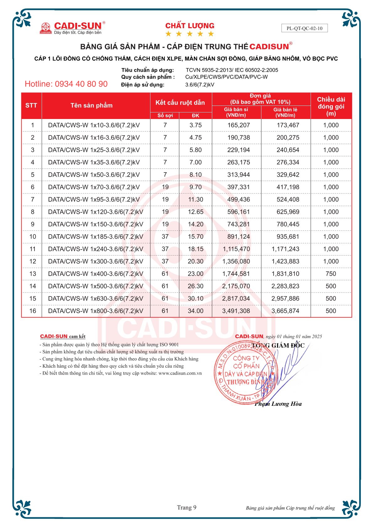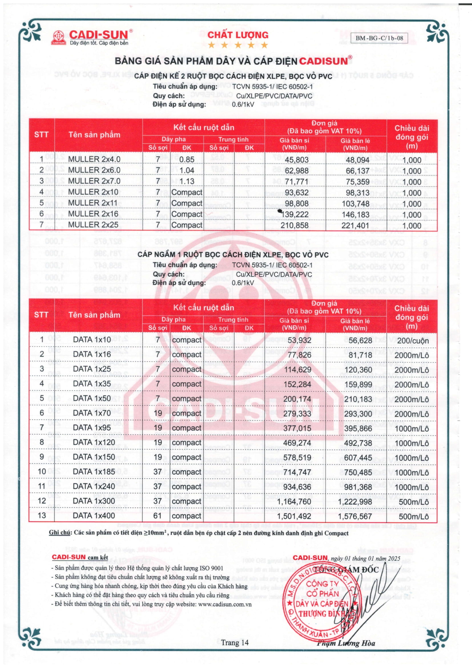 Tham khảo mức báo giá dây cáp ngầm Cadisun để có thêm thông tin chi tiết.