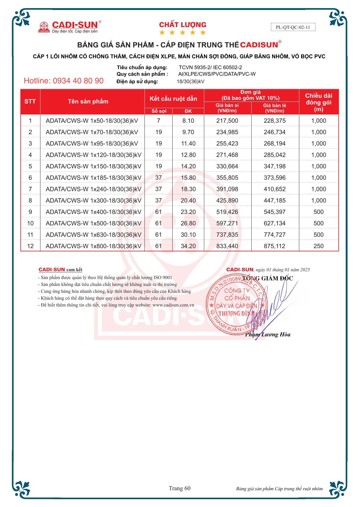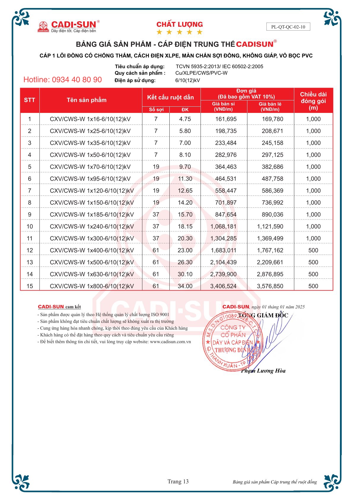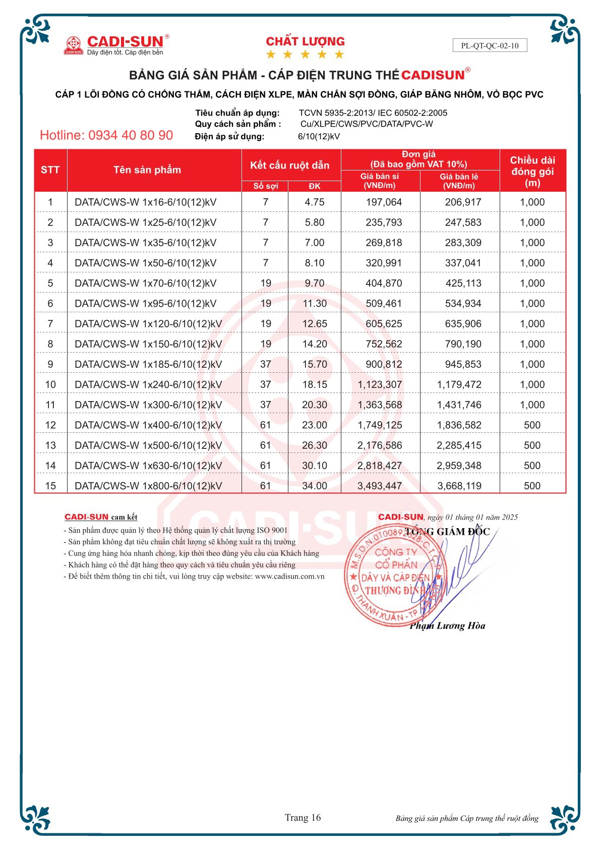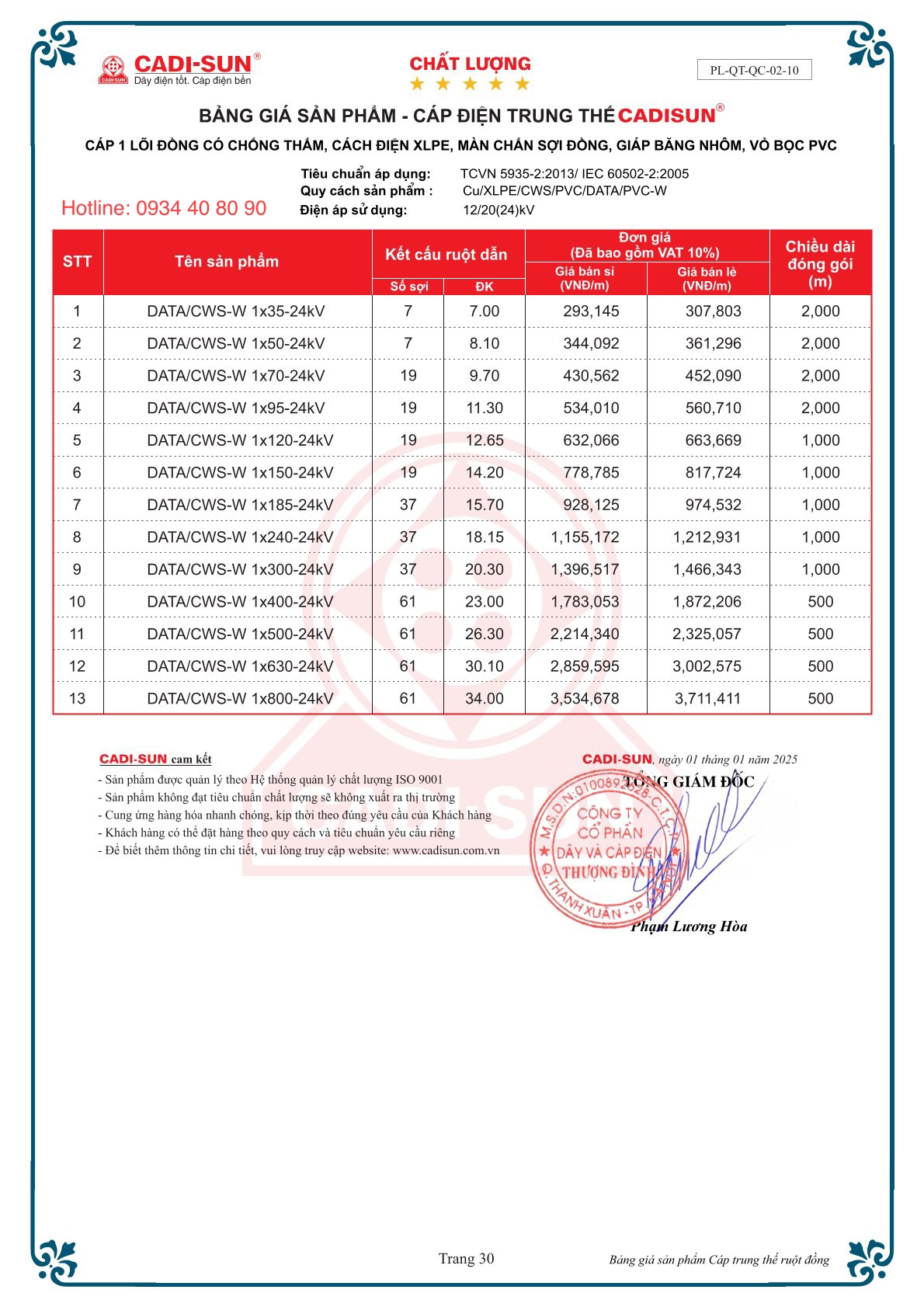 Tham khảo mức báo giá dây cáp ngầm Cadisun để có thêm thông tin chi tiết.