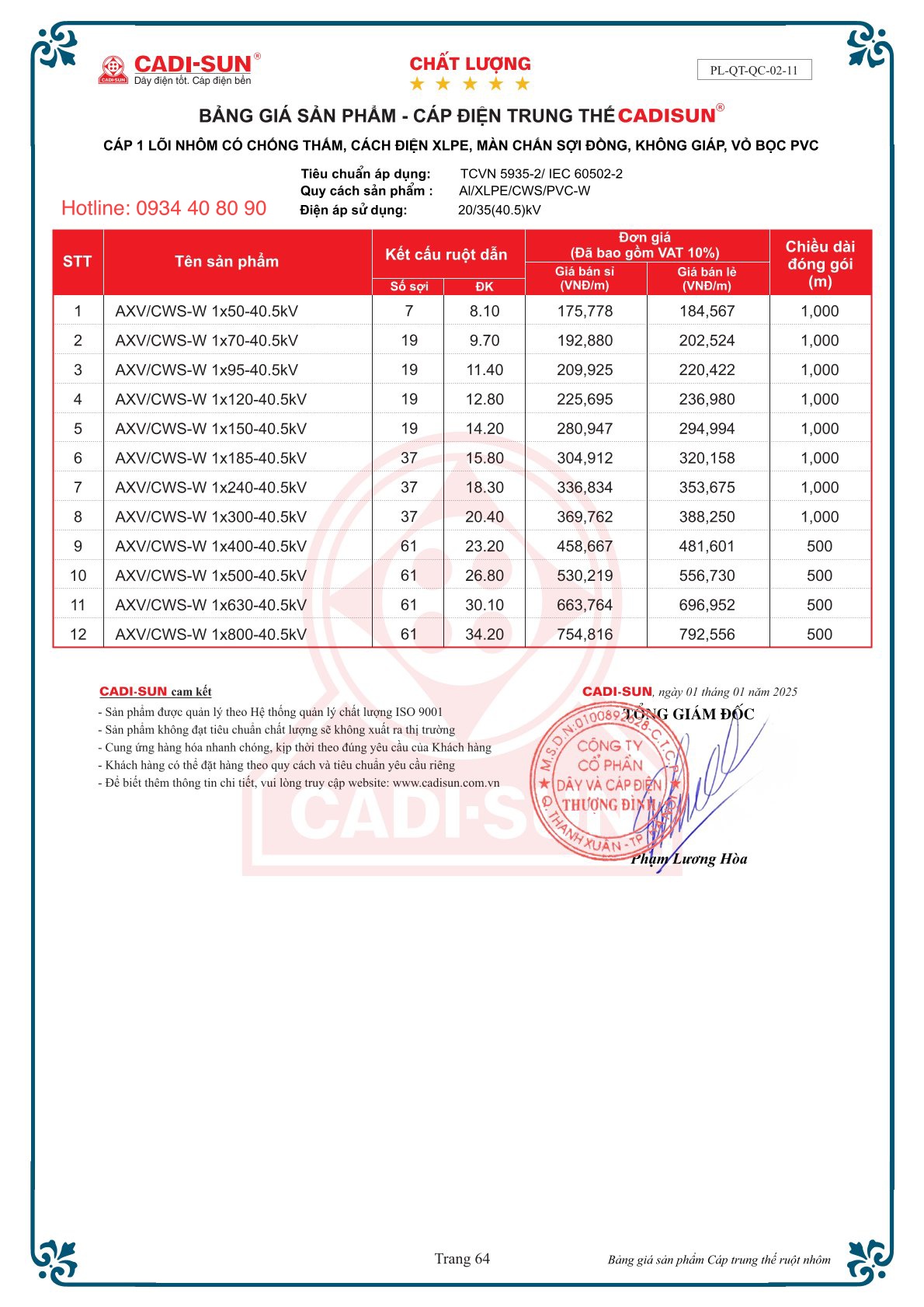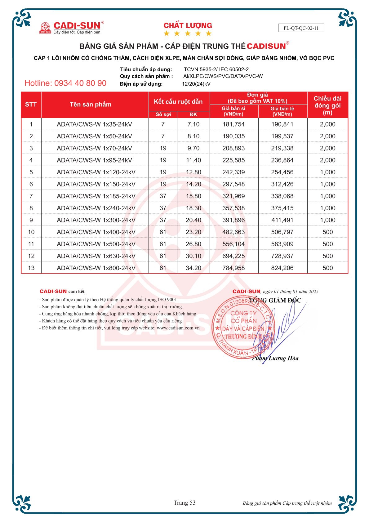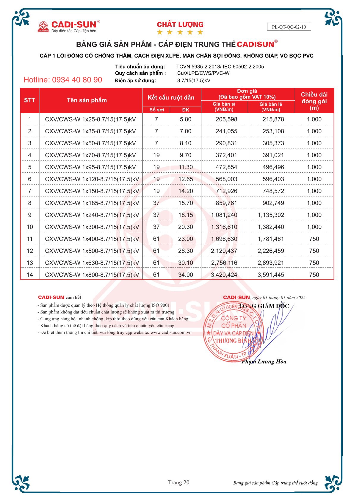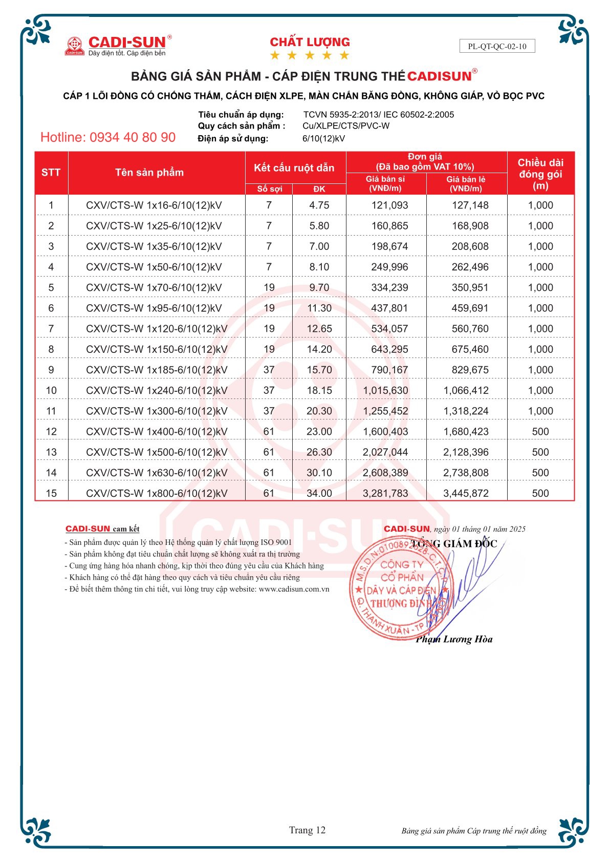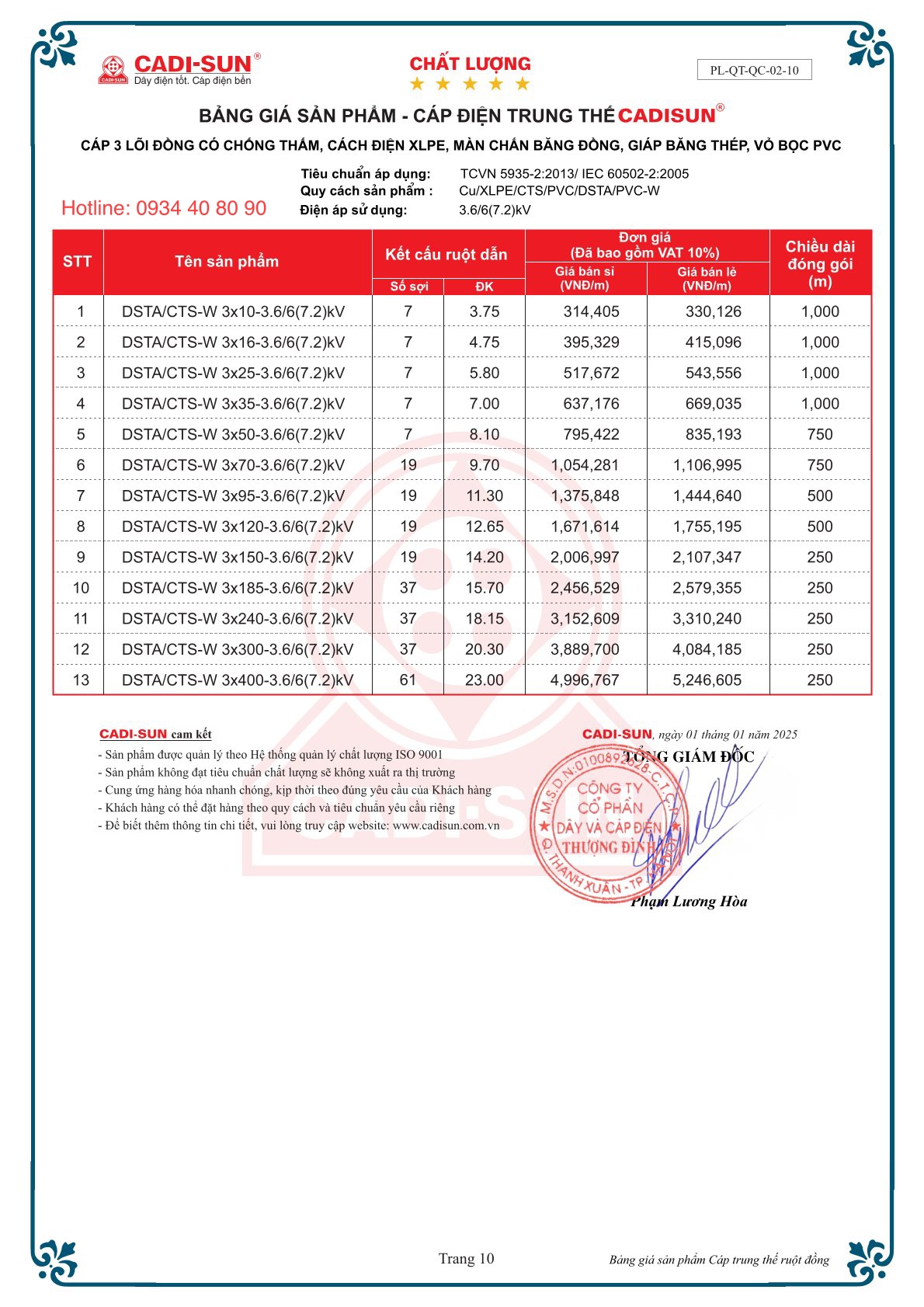 Tham khảo mức báo giá dây cáp ngầm Cadisun để có thêm thông tin chi tiết.