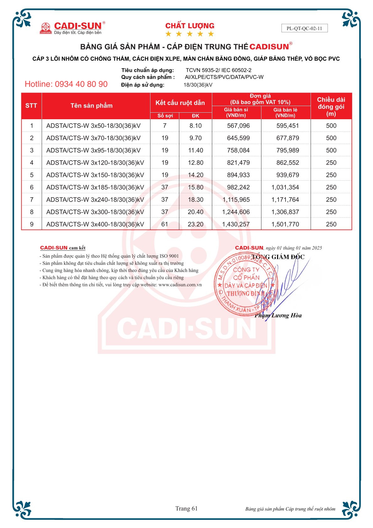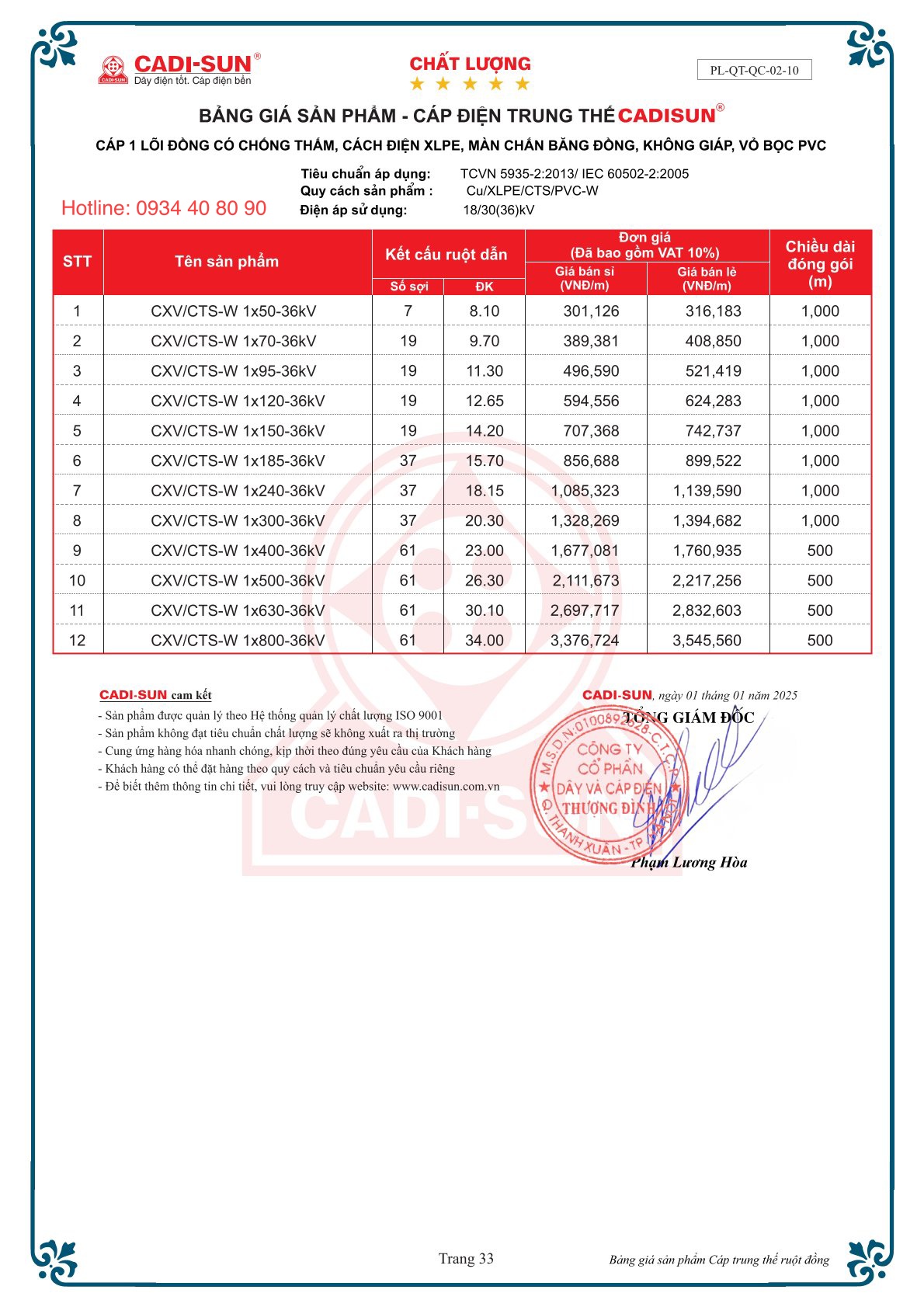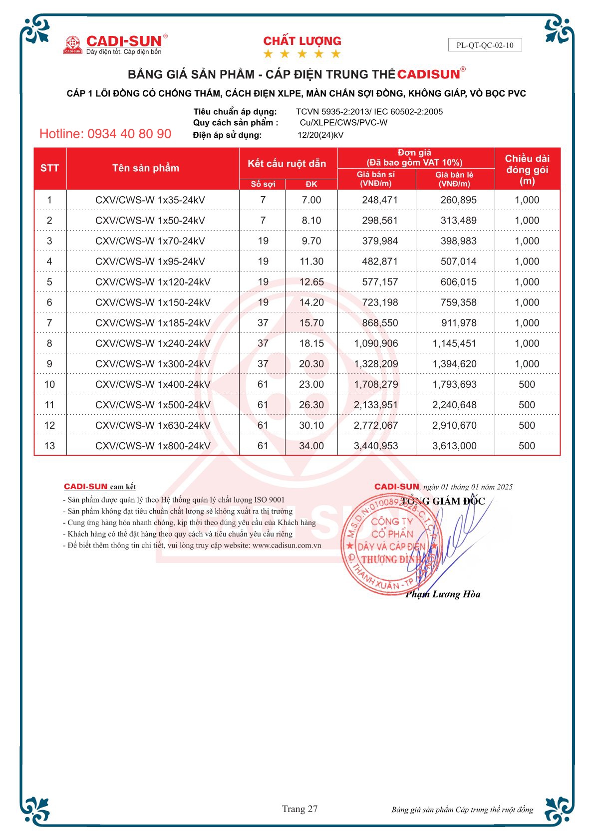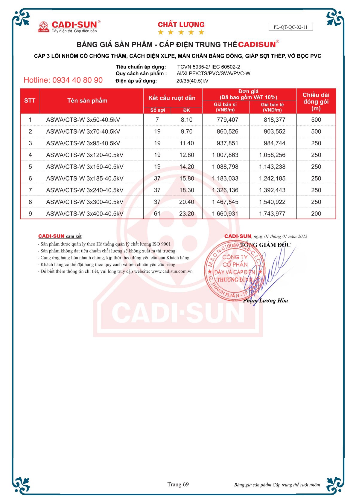 Tham khảo mức báo giá dây cáp ngầm Cadisun để có thêm thông tin chi tiết.