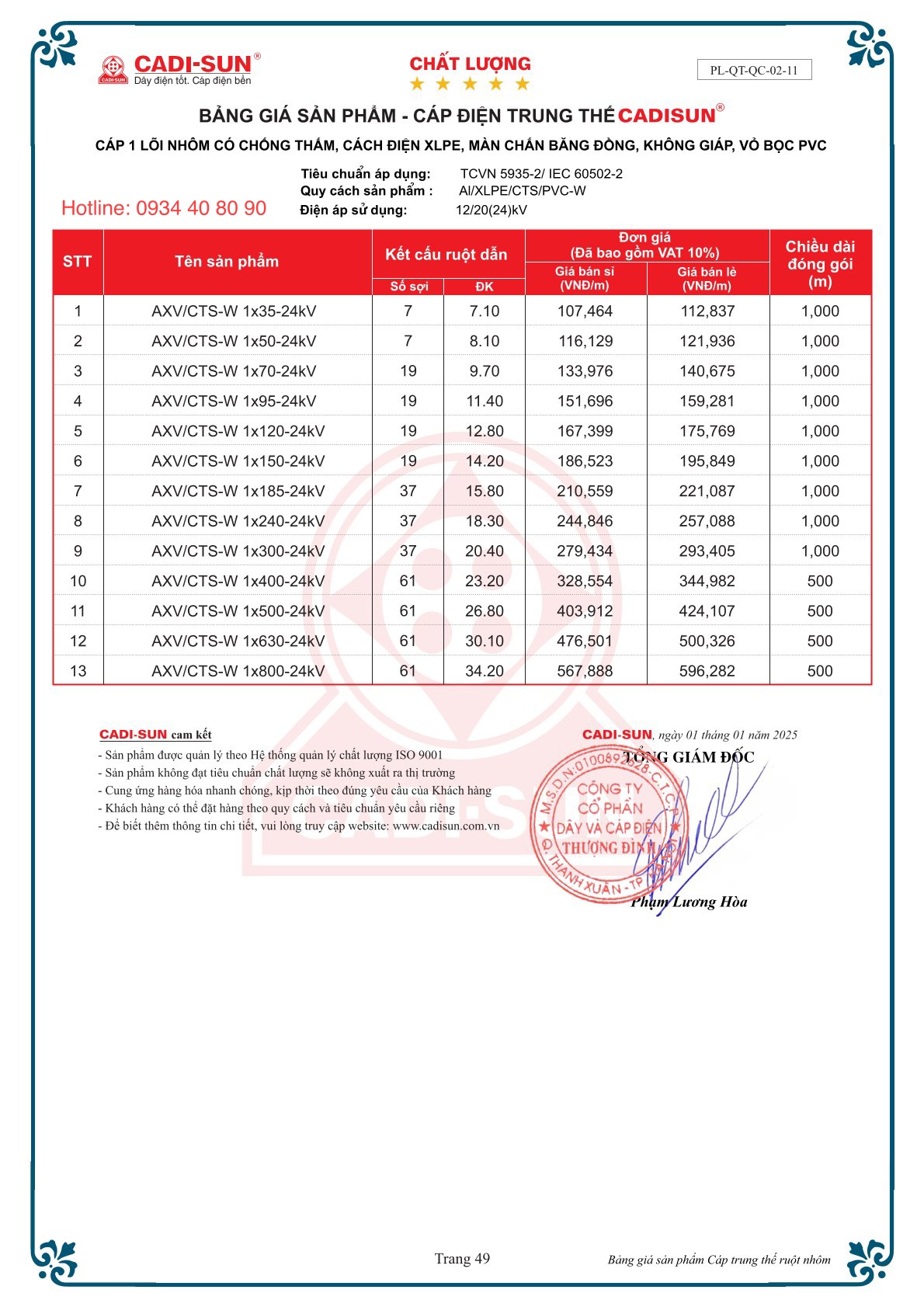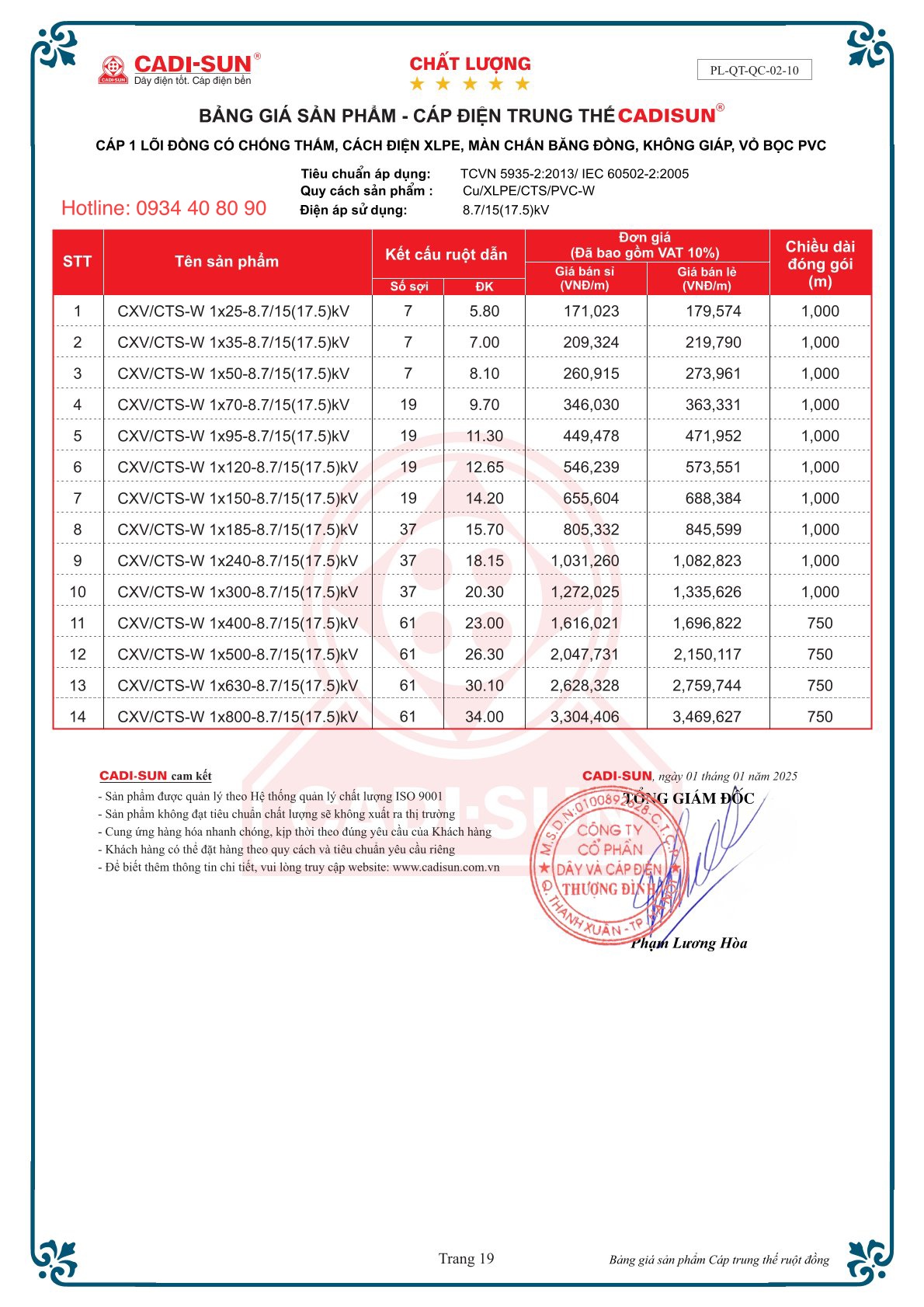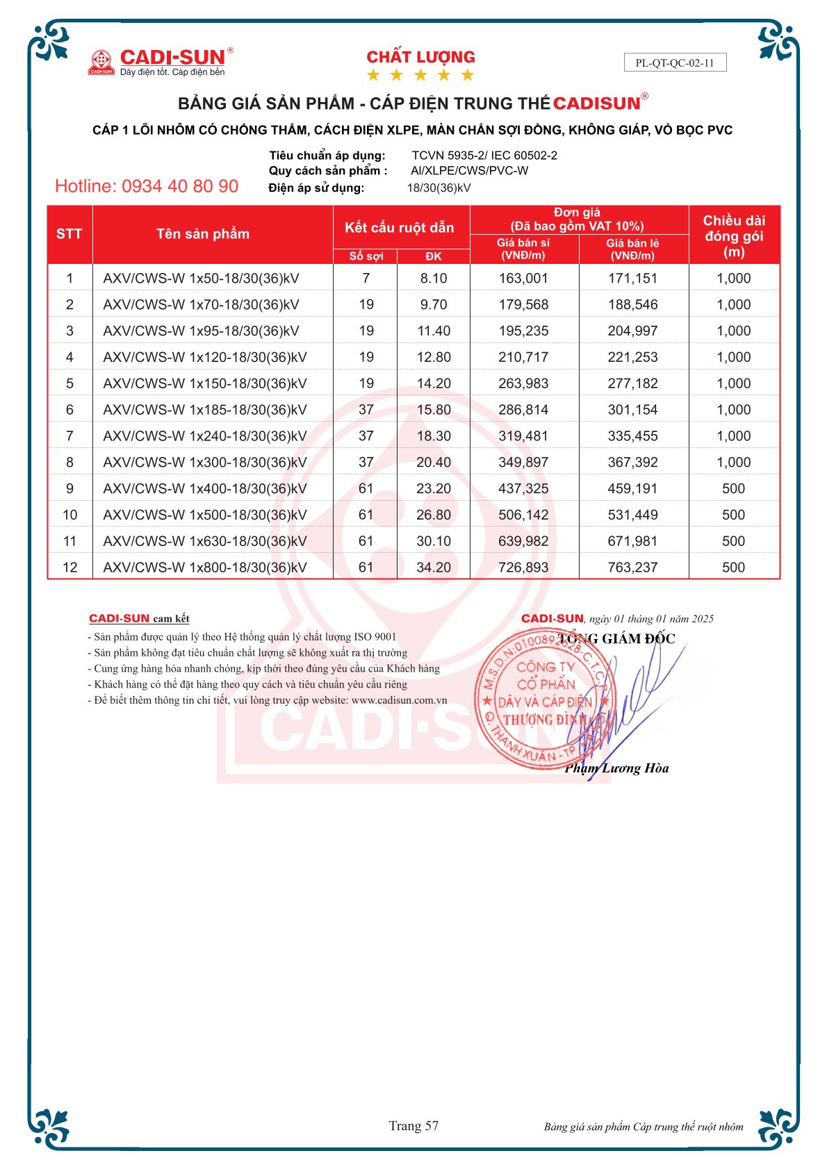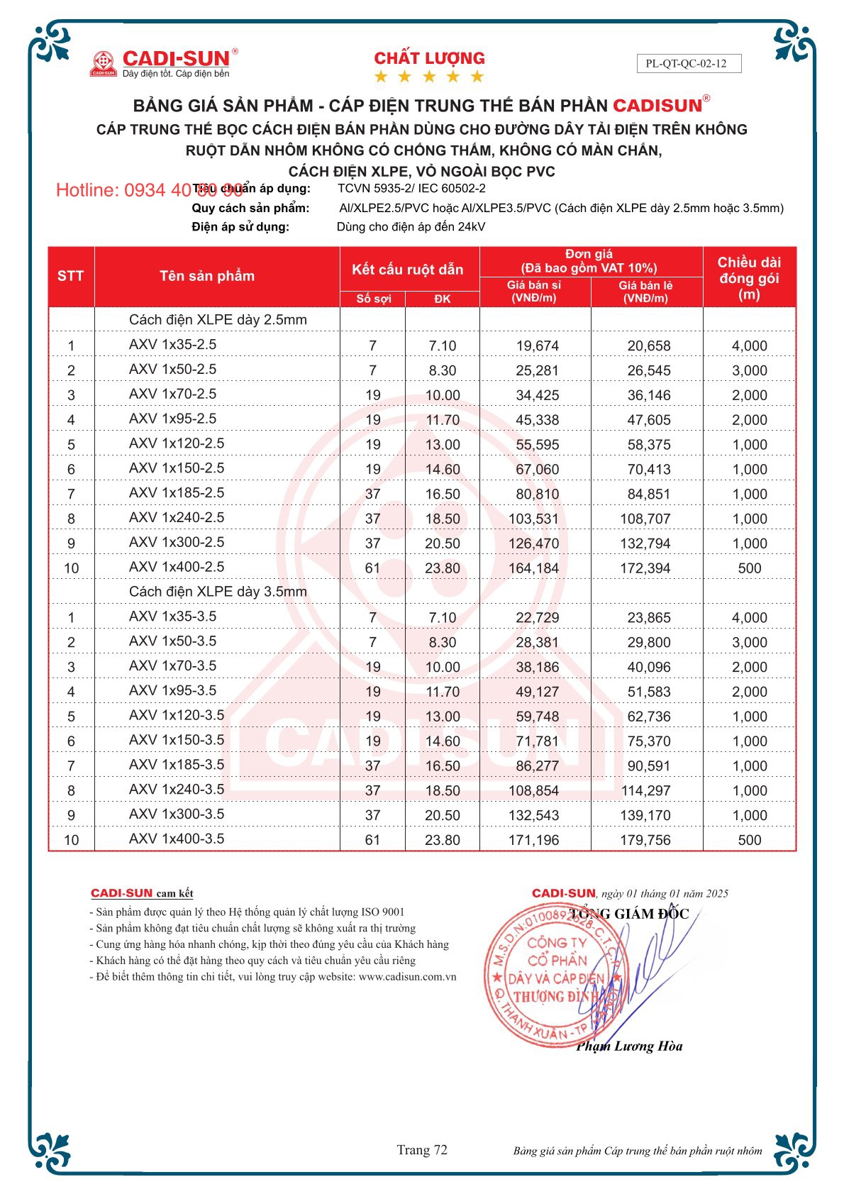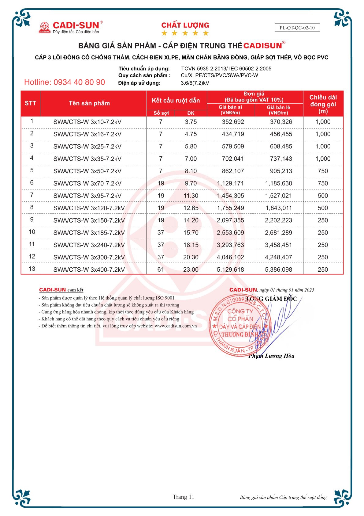 Tham khảo mức báo giá dây cáp ngầm Cadisun để có thêm thông tin chi tiết.