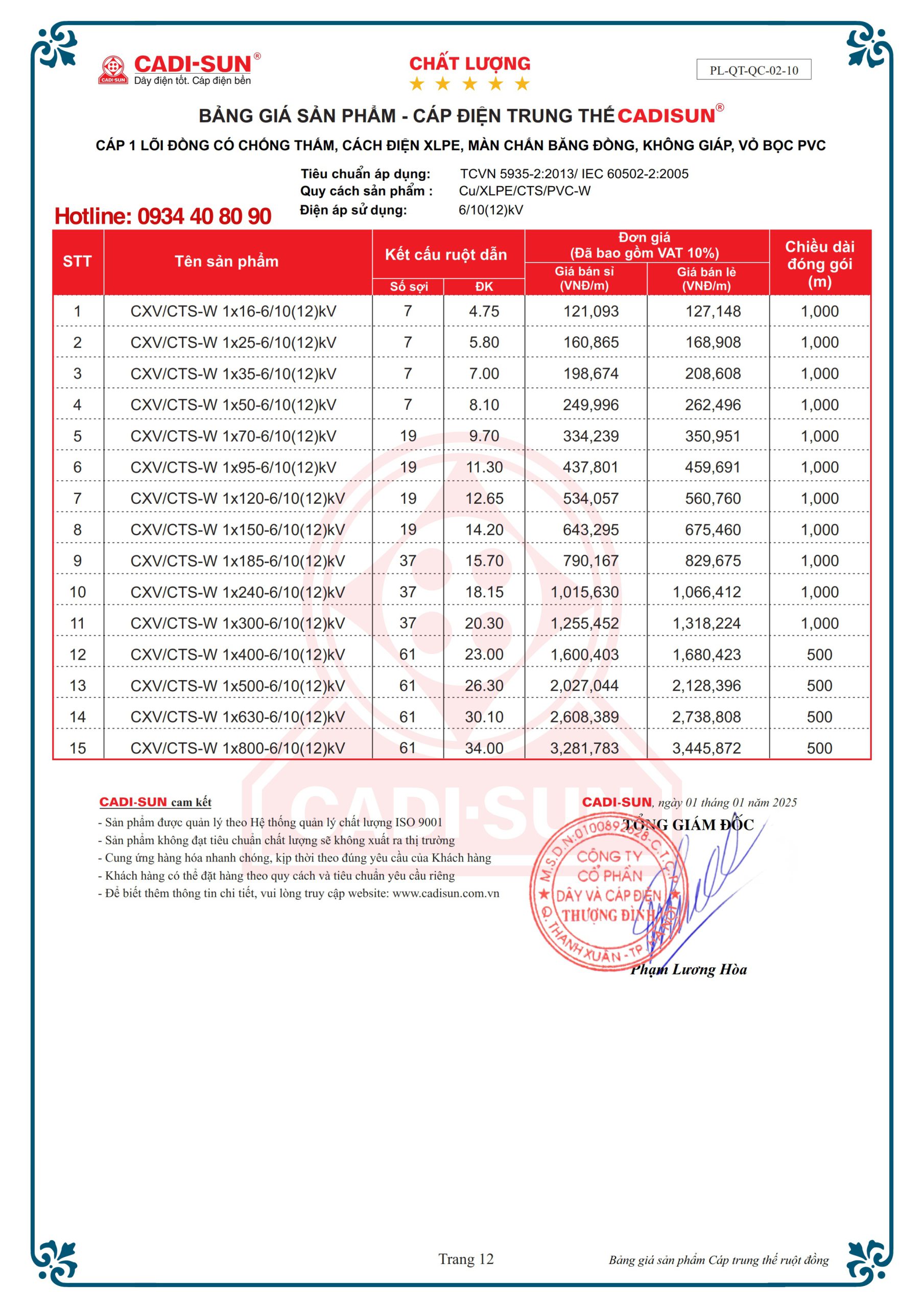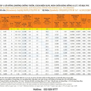 – Vật liệu: cách điện XLPE vỏ bọc PVC, Fr-PVC hoặc HDPE