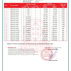 – Mặt cắt danh định: Từ 1.5 mm2 đến 1000 mm2