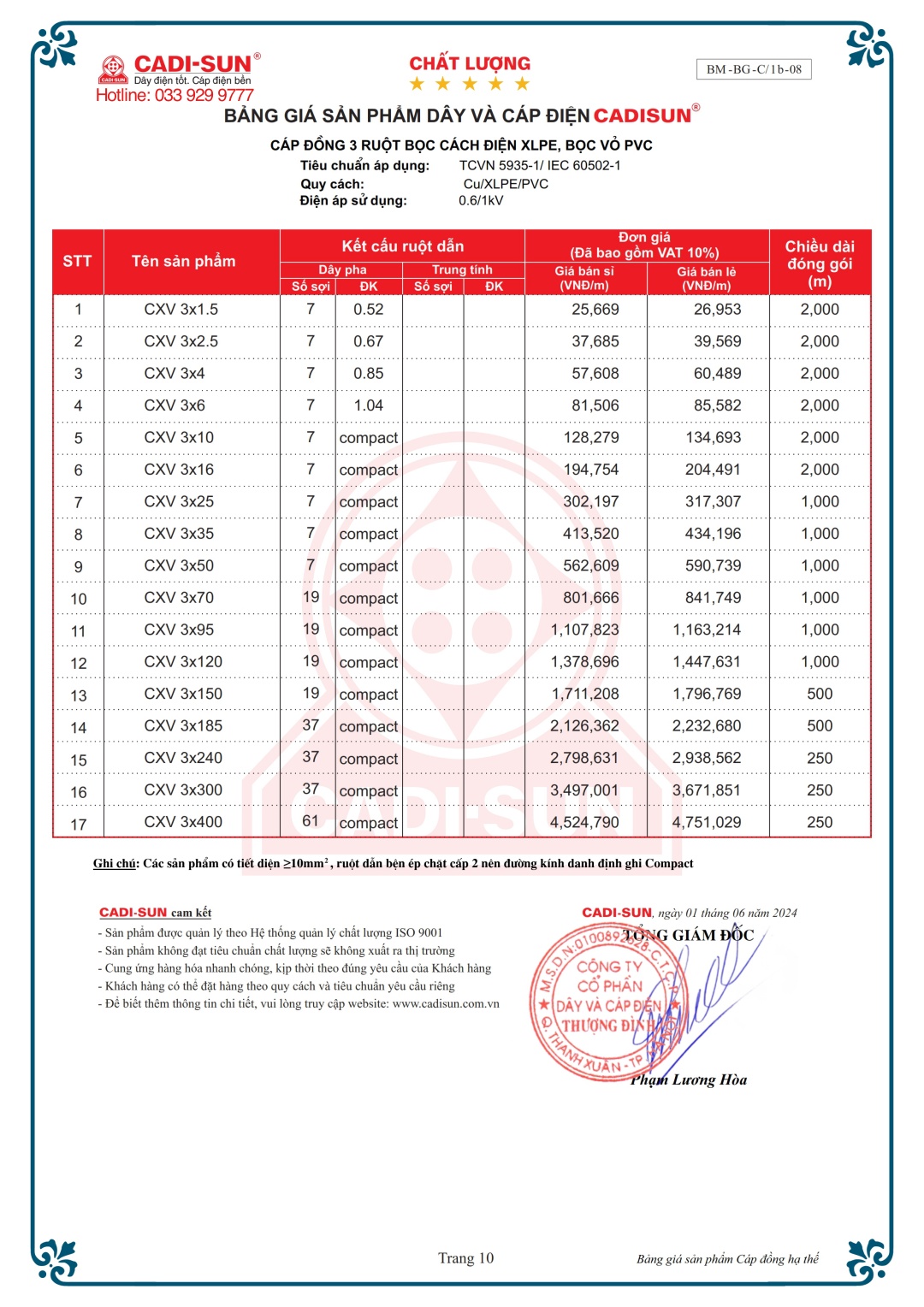 * Ghi chú: Ngoài các quy cách nêu trên, CADI-SUN có thể đáp ứng các yêu cầu khác của khách hàng.