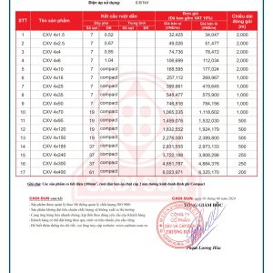 + Ruột dẫn đồng Từ 1.5 mm2 đến 1000 mm2
