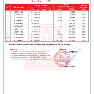 * Ghi chú: Ngoài các quy cách nêu trên, CADI-SUN có thể đáp ứng các yêu cầu khác của khách hàng.