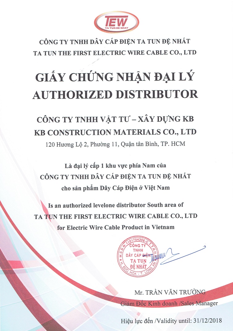 KBElectric là một công ty phân phối dây cáp điện hàng đầu tại Việt Nam. KB đã và đang và tự hào được chứng nhận là đại lý cấp 1 dây cáp điện Cadisun. Đây là một trong những thương hiệu cáp điện nổi tiếng và được tin cậy nhất trên thị trường Việt Nam.